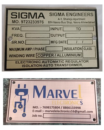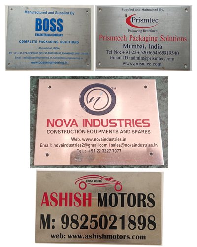 We have a well-established reputation in the Metal Label industry. Hence, we can finish the entire production process quickly and completely with efficient computer specialists, engineers, and a trained workforce. We can do it well before the deadline, allowing us to keep our costs low and our prices competitive. This is to notify the customers that BHAVANI GRAPHICS is a leadint manufacturer and supplier of high-quality Office Name Plate, Stainless Steel Label, Aluminium Scale Label, Sign Label, and many other products.